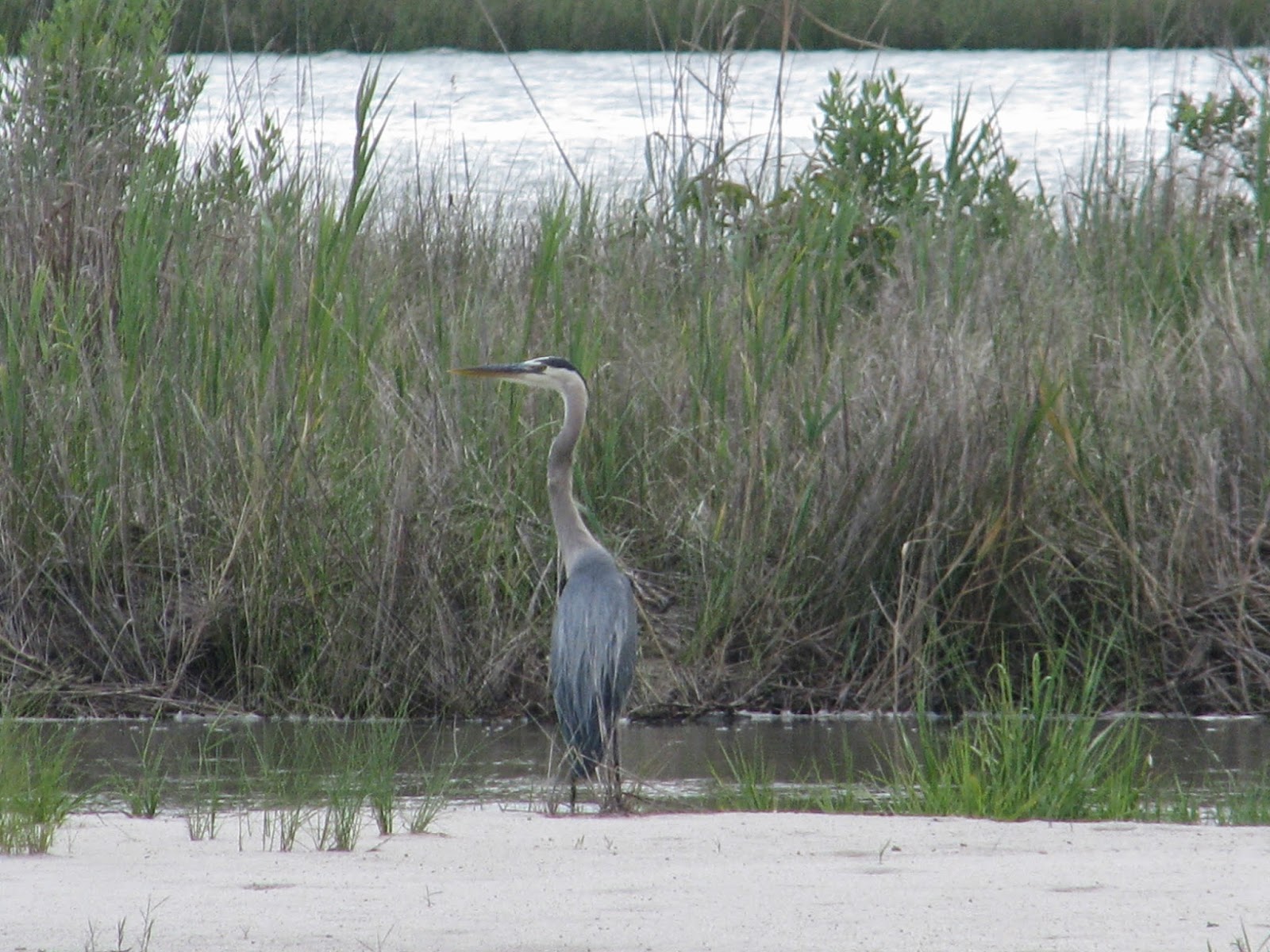 | A hungry heron stubbornly refuses to go back to his hunting even though the camera is very far away; things only appear close here thanks to the zoom. |